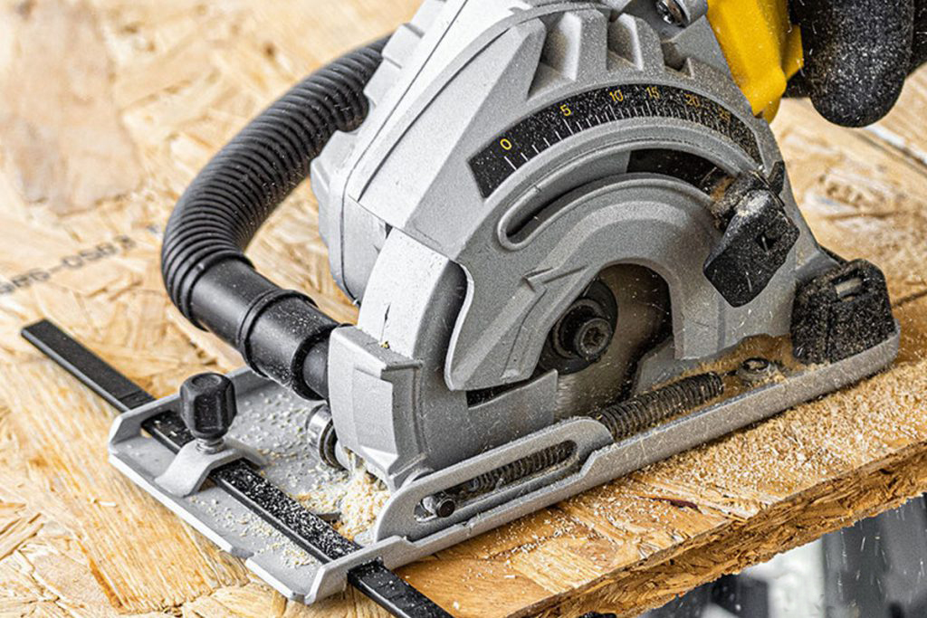 استفاده از گونیا روی اره دایرهای برشی یکنواخت و یک اندازه را تضمین میکند.